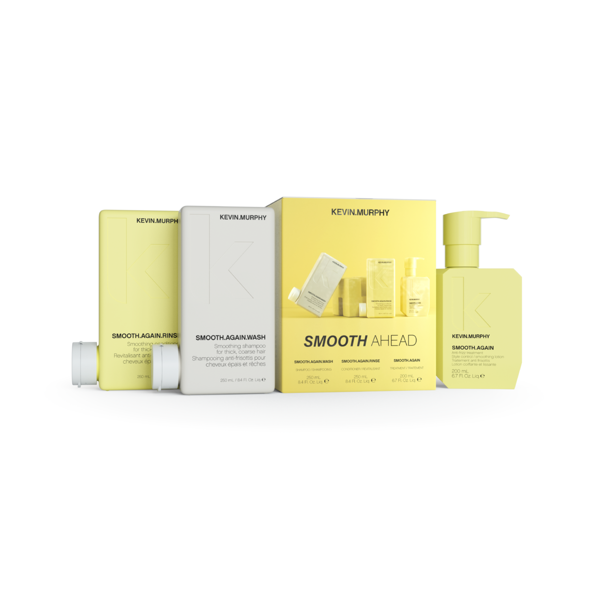 • SMOOTH.AGAIN.WASH (250ml) – Siledusele suunatud šampoon, mis pehmendab ja silub kahuseid või kiiresti kahunevaid juukseid, jättes need läikivaks, pehmeks ja lihtsamini käsitletavaks. Sobib igapäevaseks kasutamiseks ja aitab kontrollida kahusust.